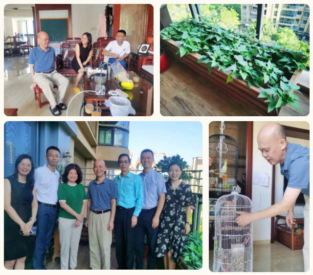 集團原副董事長羅映南家中,兩只鸚鵡吸引了大家注意,原來羅董在家逗鳥、種菜,在都市一隅醉夢“田園光景”,好不快活。據羅董太太介紹,本學期進入華師希平雙語學校就讀的大孫女,已化身學校小小宣傳員,在小區(qū)內逢人便介紹希平學校老師們有趣的教學方法,分享她在校園感受到的快樂。言談中,皆是兒孫繞膝盡享天倫的福氣。