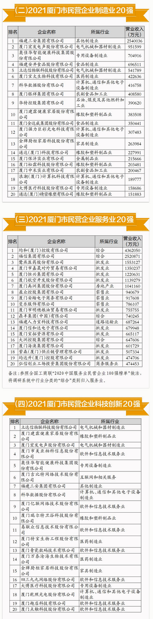 2021廈門市民營企業(yè)服務業(yè)20強